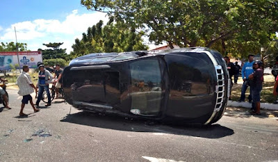 Com o forte impacto, o veiculo Jeep acabou capotando três vezes e o condutor saiu sem ferimentos.